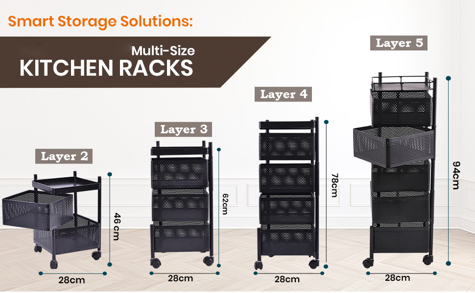 Charmy Collapsible 3-Tier Kitchen Trolley with Wheels | Foldable Metal Mesh Storage Rack | Heavy-Duty Vegetable & Fruit Basket Stand | Multipurpose Utility Cart for Home & Office