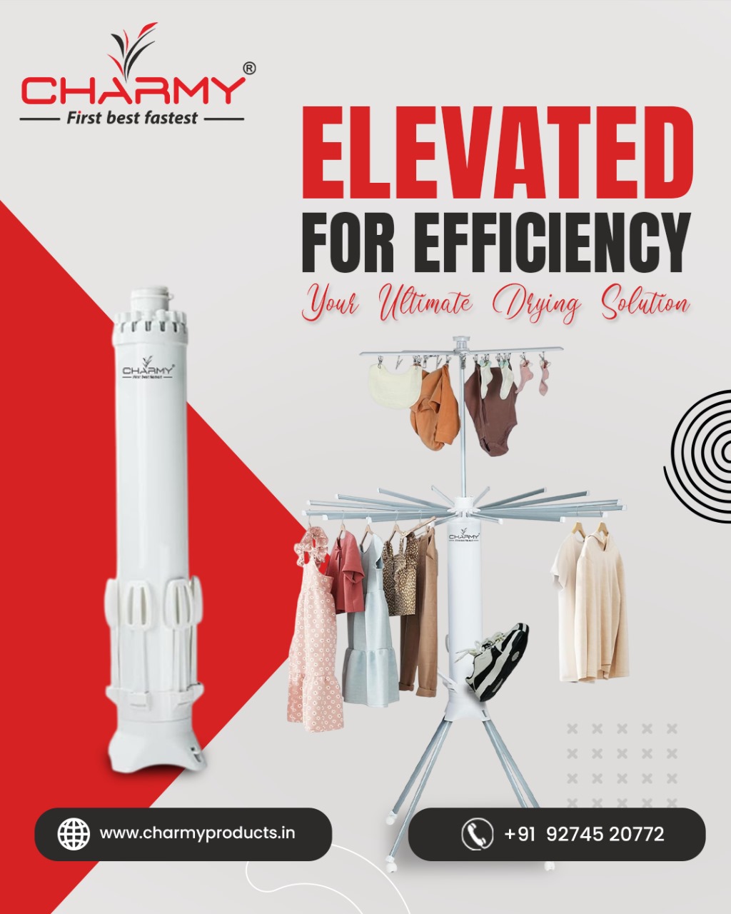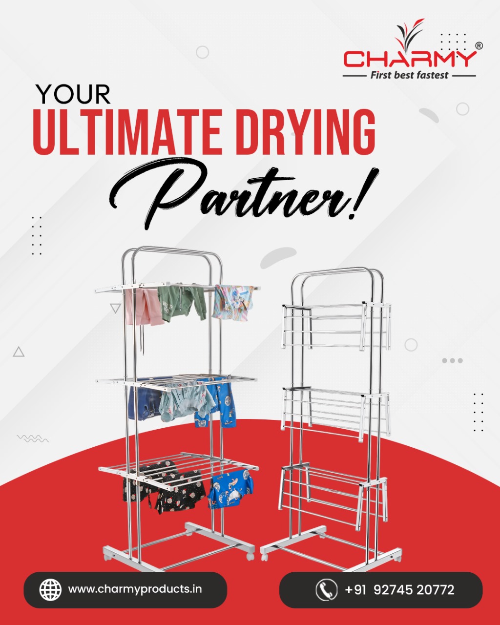 Charmy Foldable Cloth Drying Stand with Wheels | Multi-Layer Heavy Duty Clothes Rack for Indoor & Outdoor Use | Adjustable Arms, Shoe Rack & Hangers – Stainless Steel & Plastic