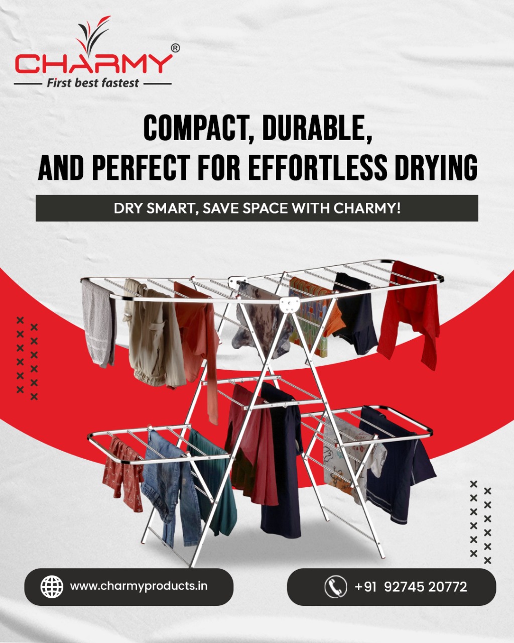 ✅ STABLE TRIANGULAR STRUCTURE – Designed with reinforced joints and a wide 76 cm base for better stability, even with heavy loads of wet laundry.