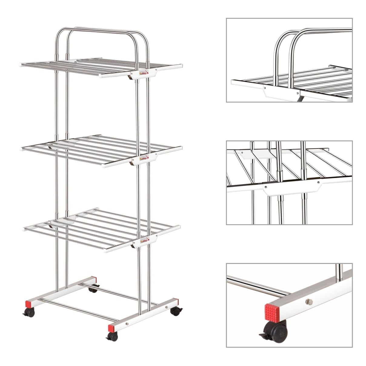 ✅ Multi-Tier Drying Space – 3-tier structure with wide rods provides ample room for clothes, towels, bedsheets, and delicates.